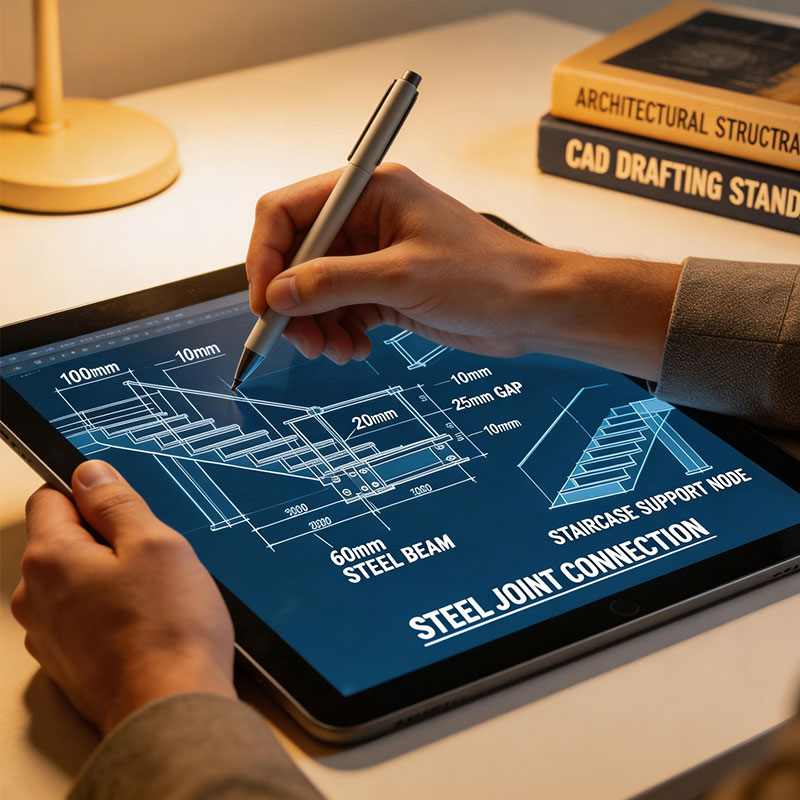 Our engineering team in Changzhou provides millimeter-precise 3D models and CAD shop drawings for every project. This ensures your staircase fits perfectly into your architectural space before a single piece of steel is cut.